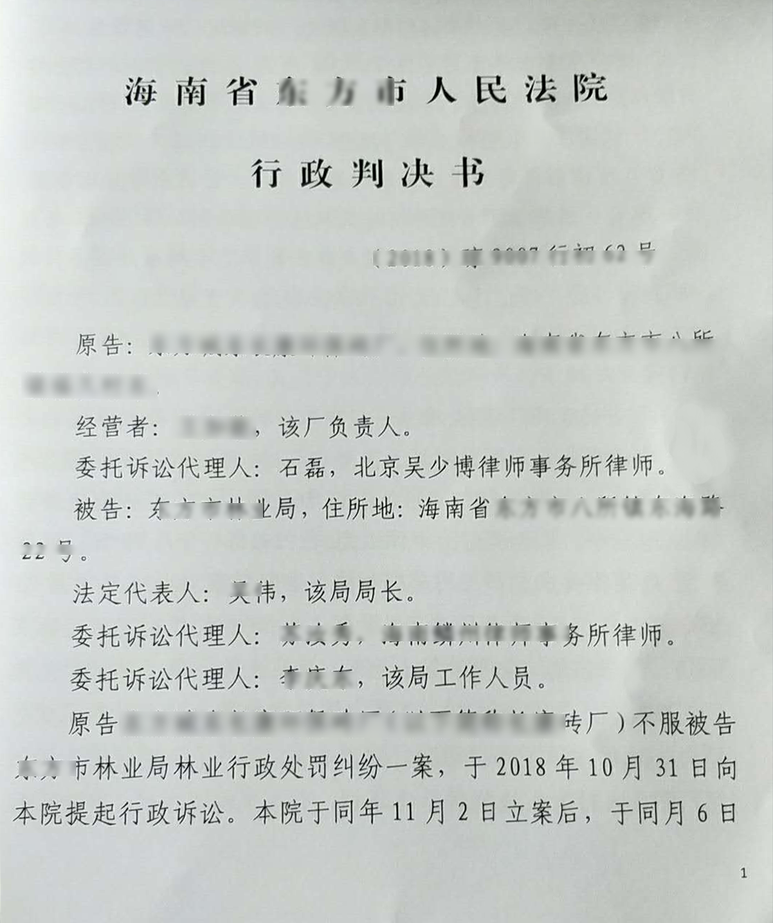 海南某环保砖厂环保关停行政处罚胜诉判决书_石磊胜诉