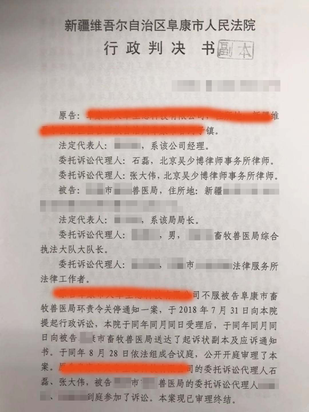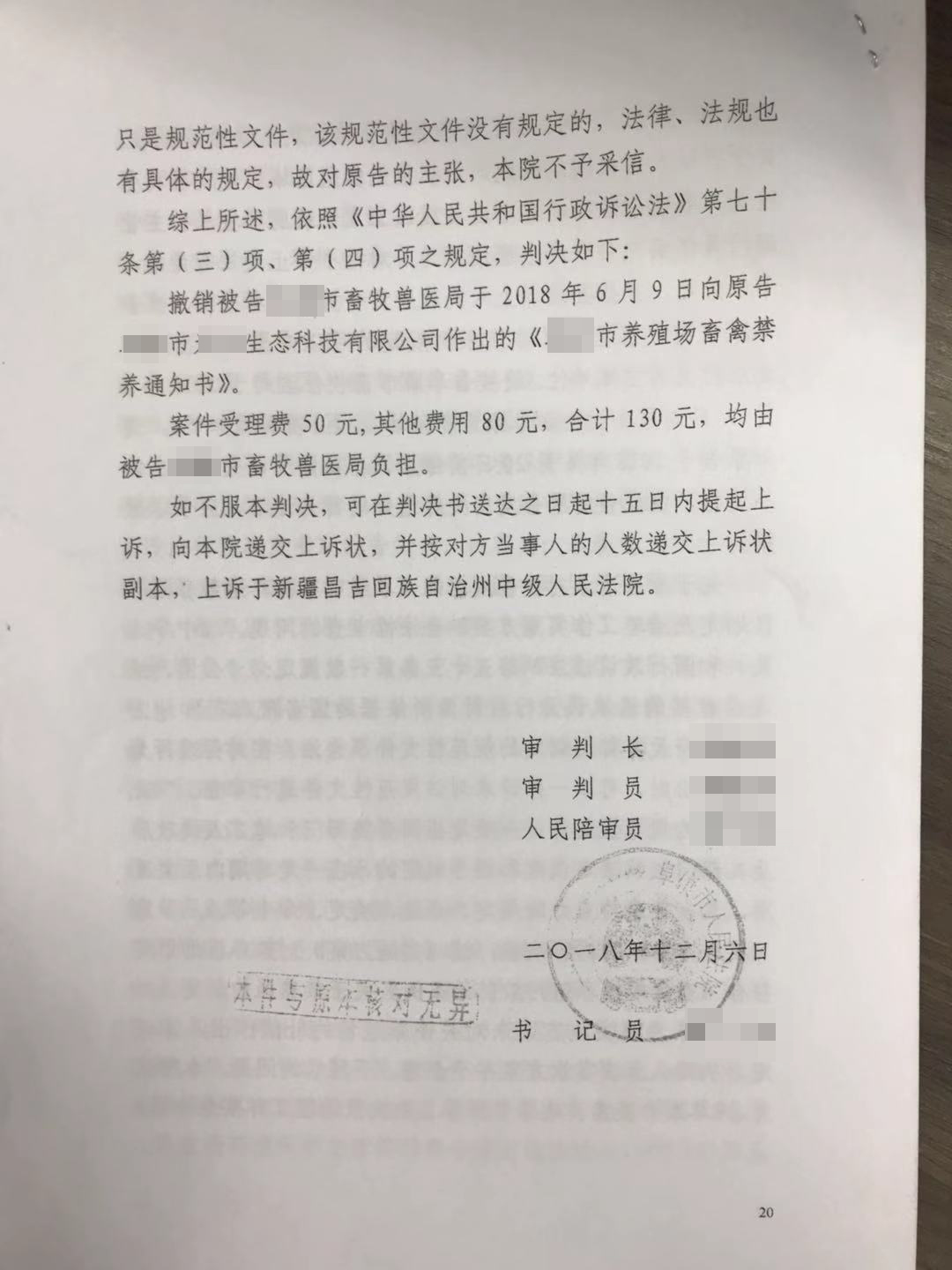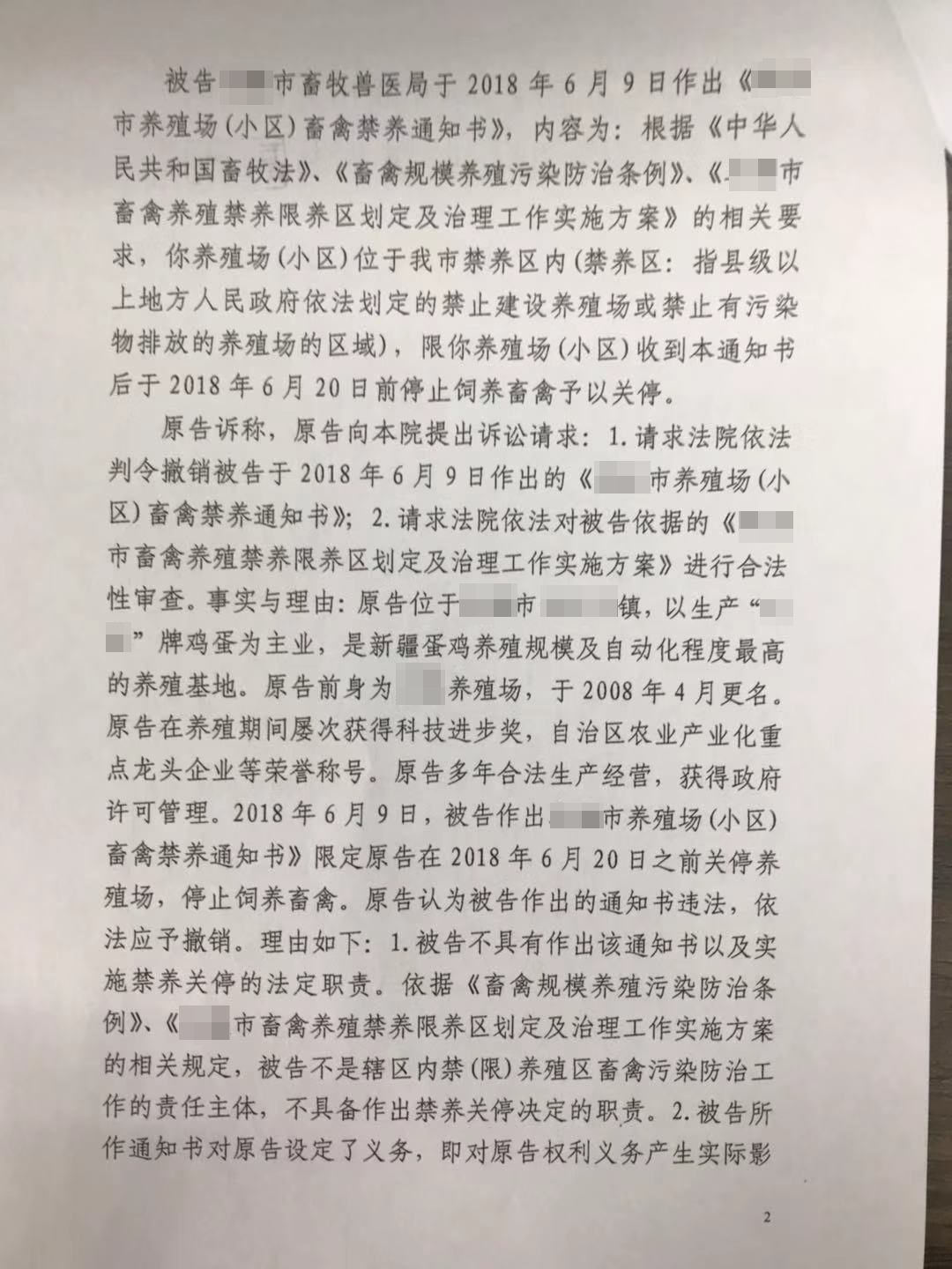 新疆蛋鸡养殖企业禁养关停案 撤销禁养通知书_石磊胜诉_张大伟胜诉